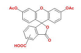 熒光素二乙酸酯(FDA)及其衍生物是非熒光分子,其擴散到細胞中并被細胞內非特異性酯酶水解以產生熒光產物。熒光產物只能在具有完整細胞膜的細胞中積累;因此,具有滲漏膜的死細胞不會被染色。 FDA及其類似物(例如CDCFDA)的膜轉運和細胞內水解的精確動力學與細胞功能有關,因此FDA標記可用于通過流式細胞術或熒光顯微術監測細胞。 FDA染料標記細胞的熒光強度在細胞系和菌株之間差異很大,可能是由于細胞內酯酶活性的差異。CFDA是一種胺反應性FDA衍生物,可用于制備各種FDA結合物。