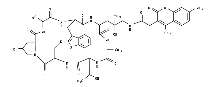 鬼筆環肽-AMCA標記探針會選擇性地結合F-肌動蛋白。以納摩爾濃度使用,鬼筆環肽衍生物是方便的探針,用于標記,鑒定和定量甲醛固定和透化組織切片中的F-肌動蛋白,細胞培養物或無細胞實驗。肌動蛋白是一種球狀的,大約42kDa的蛋白質,幾乎存在于所有真核細胞中。 它也是最高度保守的蛋白質之一,與藻類和人類不同的物種相差不超過20%。 肌動蛋白是細胞中兩種細絲的單體亞基:微絲,細胞骨架的三個主要組分之一,以及微絲,是肌細胞中收縮裝置的一部分。 因此,肌動蛋白參與許多重要的細胞過程,包括肌肉收縮,細胞運動,細胞分裂和胞質分裂,囊泡和細胞器運動,細胞信號傳導,以及細胞連接和細胞形狀的建立和維持。