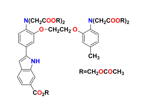 Indo-1是一種細胞生物學常用的鈣離子熒光探針,Indo-1能特異性地結合Ca2+,同時可發出熒光,Indo-1是極性大的酸性化合物,無法進入細胞內,使其成為Indo-1/AM,該變化既增加了酯溶性又消除了負電荷,極大的提高了細胞滲透性。